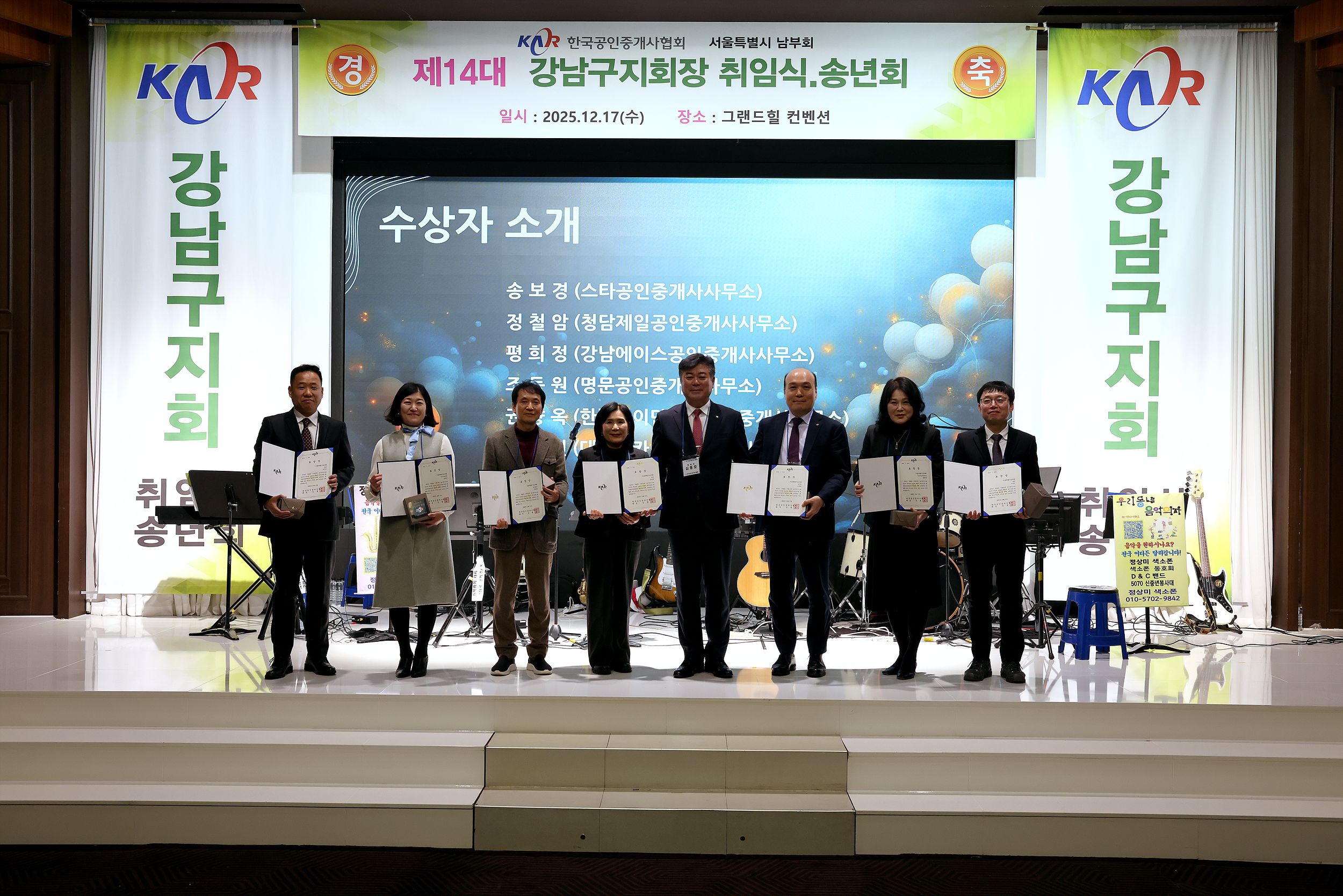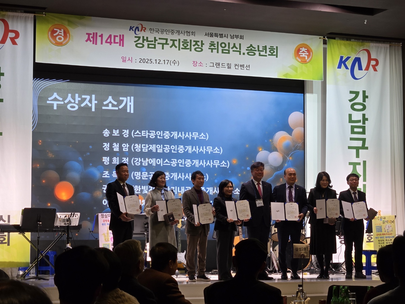 한국공인중개사협회 강남구지회 송년의 밤(2025.12.17)에서한국공인중개사협회장 표창을 받았습니다.
